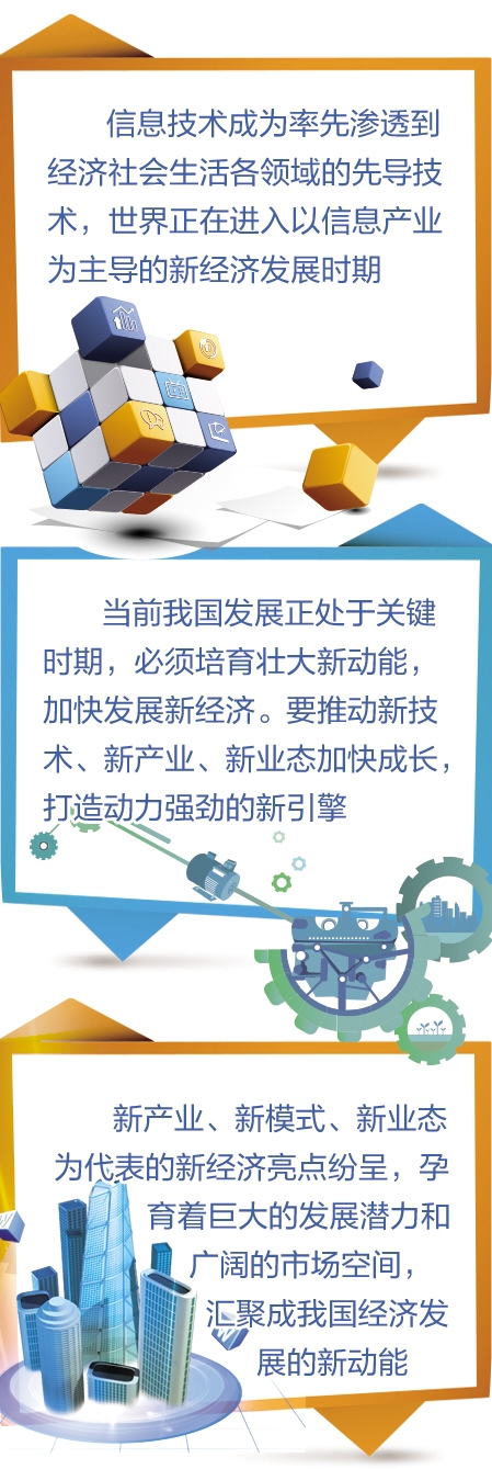 【核心看点】 新经济是相对于传统经济而言,不仅泛指在经济全球化背景下,由信息技术革命带动的、以高新技术产业为龙头的新产业、新业态、新的消费和商业模式,还表现为传统产业与新技术的融合发展。眼下,世界正在进入以信息产业为主导的新经济发展时期。从当前和今后我国经济发展的现实需要看,加快发展新经济,做大做强新经济,是我国适应新常态、引领新常态的一个重要思路和发展路径,对于我国推进供给侧结构性改革,实现新旧动能转换,具有战略性的重要作用