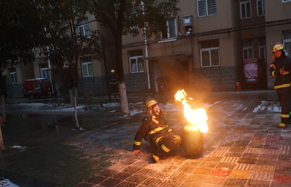 “马上就是一楼了,再坚持最后10秒钟!”一路上,战友们不断为他鼓劲。忍痛跑到一楼,将煤气罐放在空旷地,万文韬一跤跌坐在湿漉漉的地上,喘着粗气。图片来源:中国长安网