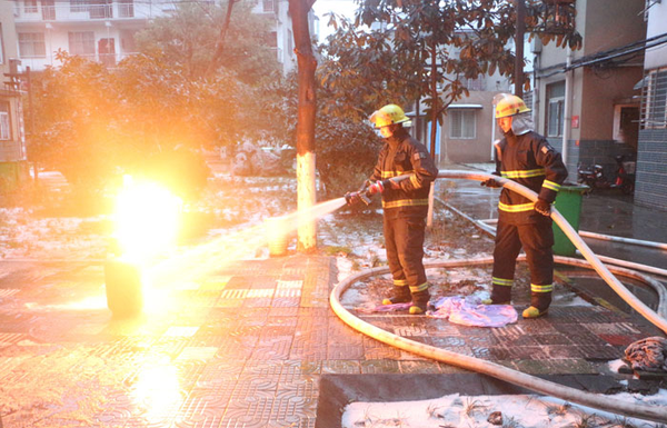 战友迅速用水枪对着煤气罐猛烈喷射,前后8分钟,险情被排除。图片来源:中国长安网