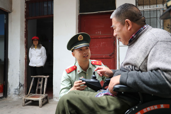 万文韬用梦想基金为杨宝成老人购买电动轮椅。图片来源:襄阳文明网