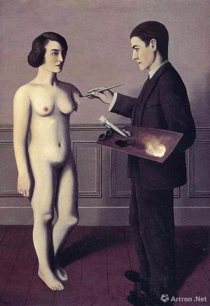 马格里特《知其不可而为之》,1928年,画布油画,马格里特认为艺术家不是模仿现实,而是创造一种新的现实,就像艺术家可以画出真的模特一样。