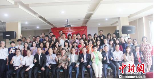 6月4日下午,华侨大学校长贾益民率团访问印尼,与该校印尼雅加达校友们交流欢聚,传递学校的好消息。图为贾益民(前排右六)与雅加达校友欢聚一堂。林永传摄