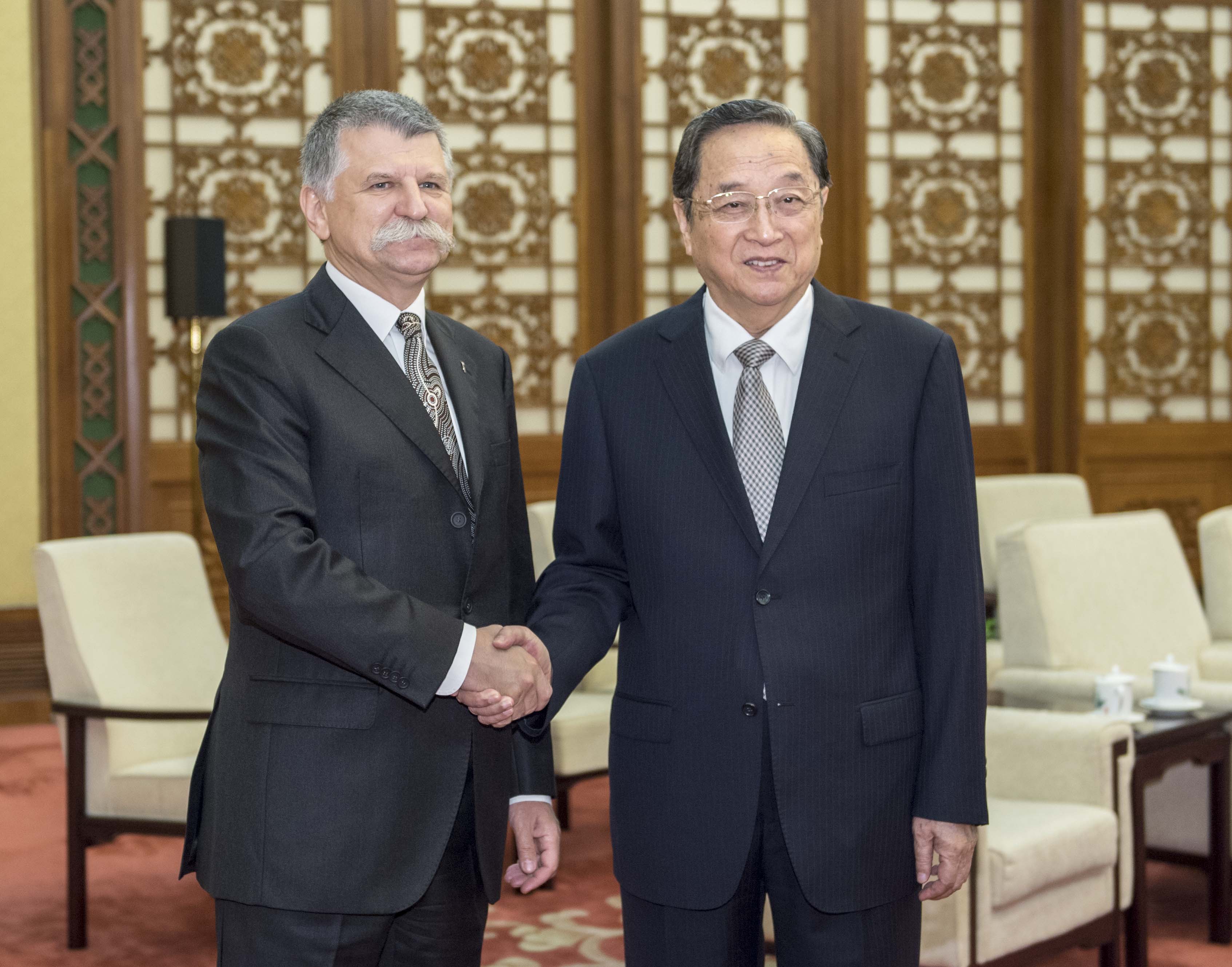 俞正声会见匈牙利国会主席克韦尔