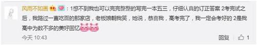 “1想不到我也可以完完整整的写完一本五三,仔细认真的订正答案 2考完试之后,我路过一直吃面的那家店,老板娘朝我笑,她说,恭喜你,高考完了,我一定会考好的 2是我高中为数不多的美好回忆?!?/p>