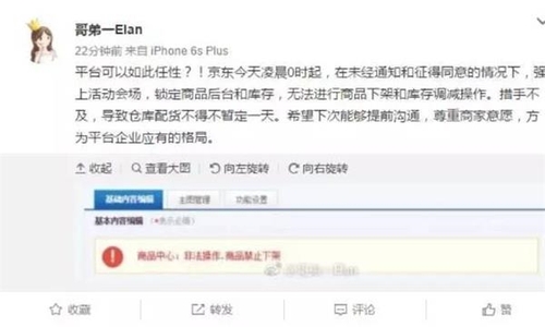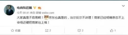 发微博声讨京东的商家截图