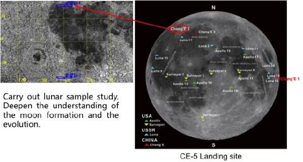 刘继忠在大会报告中透露,将为中国取回第一抔月壤的嫦娥五号将于今年年底由长征五号运载火箭发射,它将着陆在月球正面吕姆克山脉,同时开展相应的科学研究。吕姆克山脉位于月球正面西北部。