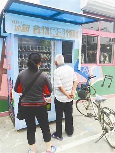 骑车半个小时后,陆文生来到一排画满彩色图案的房子外面,他径直推车走向一个酷似自动售货机的冰箱旁停了下来。摩挲着手里的两张卡片,他透过玻璃向里面张望,琢磨着要取些什么东西。