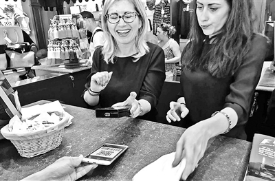 同一天,在摩纳哥旅游的北京游客刘先生逛到了蒙特卡洛大赌场边上的纪念品商店。他惊喜地发现,收银台上已经出现了熟悉的支付宝蓝色标志。刘先生挑选了一个F1赛车模型的钥匙扣,当他向外国收银员说明要用“alipay”付款时,对方叫来了另一个同事,两人商量了几句,从柜台下拿出一个扫码机,小心翼翼地对准刘先生手机上的付款码扫过去?;魍鲁鲂∑?两位店员露出“不可思议”的表情。刘先生后来得知,他是这家商店第一个成功使用支付宝消费的游客。