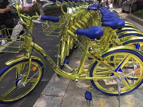 关键词:杭州街头 土豪金 共享单车
