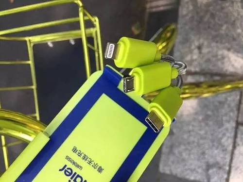 最大的亮点是有充电口,共三个,其中两个分别是安卓和苹果,支架最大可以放下苹果Plus机型。