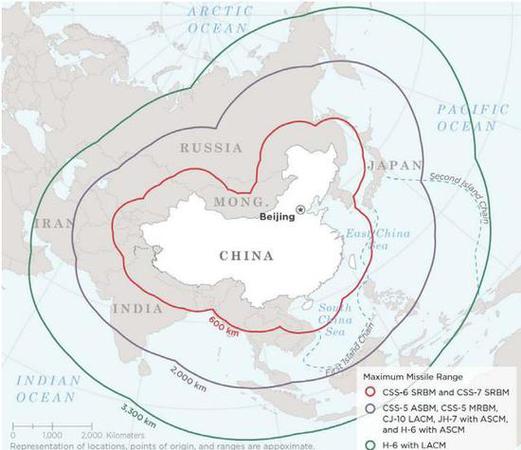 美发布中国导弹打击范围图 轰6K真实作战半径暴露