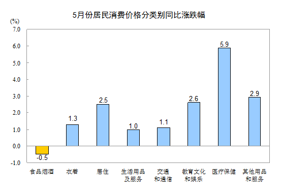 5月CPI同比上涨1.5% 医疗保健价格上涨5.9%