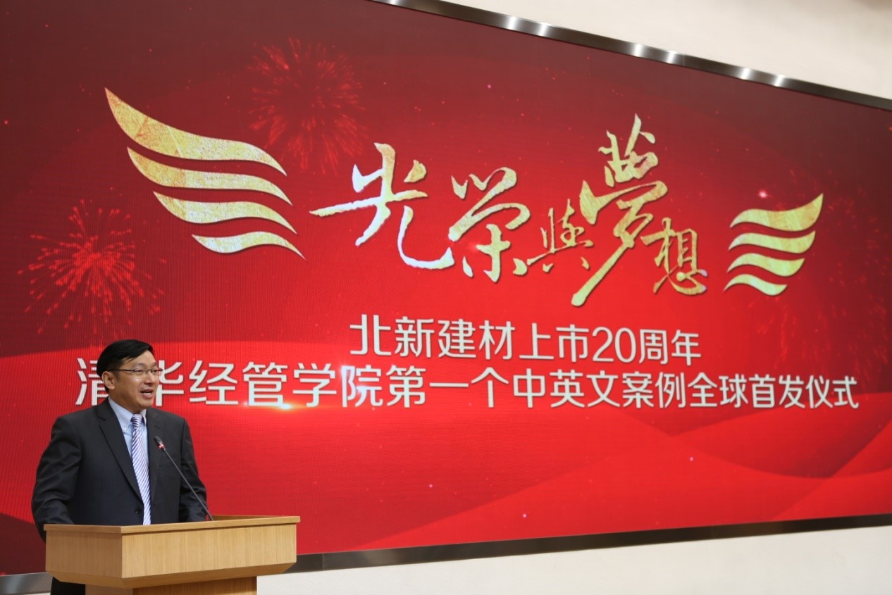 北新建材董事长王兵代表北新建材致辞。他表示北新建材在中国建材集团的战略指引和大力支持下,发展成为全球最大的石膏板产业集团,此次被清华经管学院作为案例研究,而且作为全球首创的“文字+视频”中英文系列案例非常荣幸。