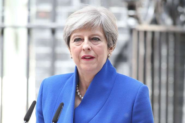 资料图:2017年6月9日,特雷莎·梅就大选结果在唐宁街10号发表讲话