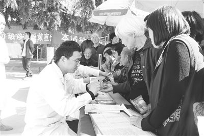 图为义诊现场,医生在为贫困户开展健康服务。
