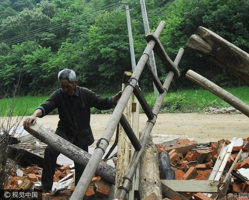 安徽独居老人房屋被拆 施工人员将老人强行拖出屋外