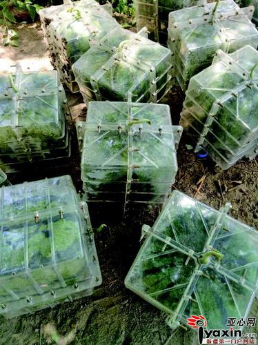 种植:玻璃做的模具套在西瓜上