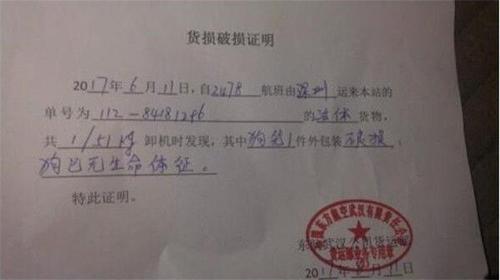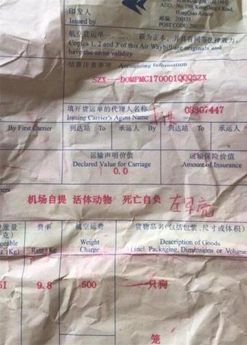 狗主人讨说法 航空公司提出每公斤100元