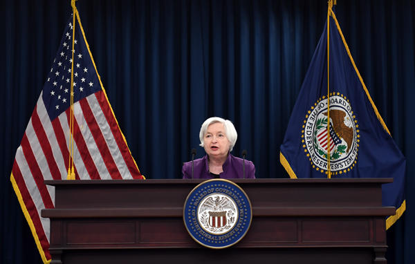 6月14日,在美国华盛顿,美国联邦储备委员会主席耶伦在新闻发布会上讲话。新华社记者 殷博古 摄