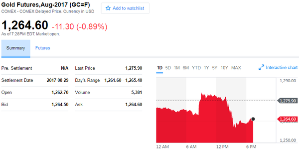 COMEX 8月黄金期货13日收涨7.30美元,涨幅0.6%,报1275.90美元/盎司,结束之前连跌五个交易日的颓势。