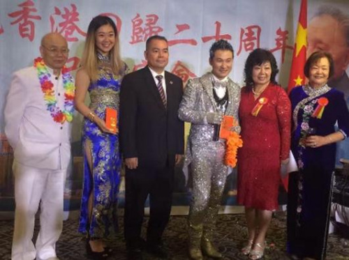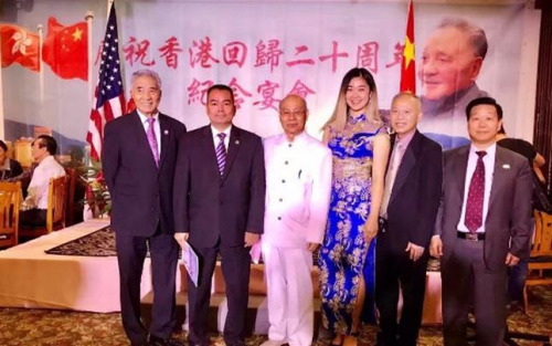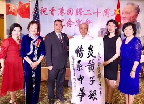 据全美中华青年联合会消息,在香港回归20周年之际,美国港澳之友会召集南加州侨界庆祝香港回归20周年,中国驻洛杉矶总领事馆副总领事王雷及南加州多个城市华裔副市长、市议员出席当天的庆?;疃?/p>