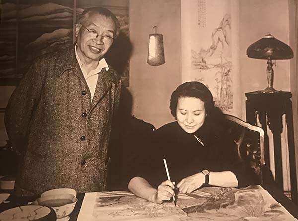 朱刚:其实我们去年年底的时候就有这个想法,纪念夏伊乔一百周年,当时就考虑是不是给夏伊乔办一个个展。但梳理当中,我们逐渐清晰。从夏伊乔、刘海粟到他们的女儿刘蟾,他们的作品从绘画或说艺术的角度来说是一种传承,但也感到他们之间有种爱的延续。刘海粟和夏伊乔其实是两条道上走的人,本来没有什么联系。刘海粟风风雨雨,颠簸坎坷,夏伊乔是富家千金,在南洋过着安逸的生活。他们两个人是很难走到一起的,是一种艺术把他们联系在了一起。联系在一起之后,这样一位富家千金又和海老共同走过了50年,而且这50年坎坷很多。对夏伊乔来说真的相当不容易,比如说1957年,海老严重中风,整日卧床,一切全是夏伊乔照顾,一个富家女突然处在这样一个境地。她每天天不亮就起来,公交车出门,非常操劳。刘海粟去世后,夏伊乔也中风了,一病16年,刘蟾从香港回上海照顾妈妈。有这些背景之后,我们重新来看他们三个人的画,会觉得特别感动。因为艺术有的时候,如果你自己没有一种由感性生发的,发自内心的感动,看着看着就没有生趣了,而他们的画,有这种背景有这种爱,不管是看他们画的牡丹也好,黄山也好,荷花也好,都是不一样的。他们是服从内心对艺术的爱。这种对艺术大爱得精神是完全渗透在画里的,所以我们想,还是做一个他们三个人的家庭画展,观众也可以通过这些画了解这一家子对艺术的传承。