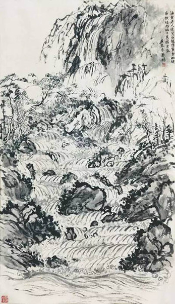黄山白龙潭,刘海粟,纸本水墨,1969