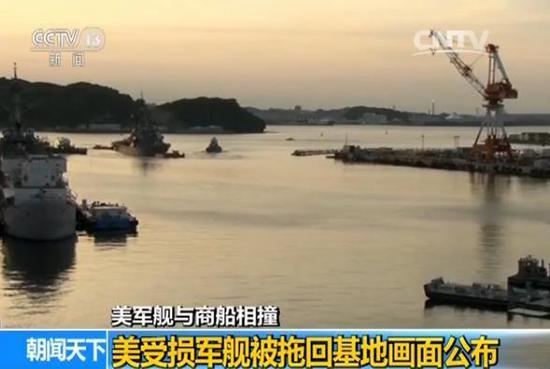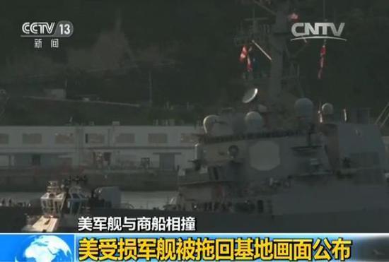 美军舰撞商船:受损军舰被拖回基地画面公布(图)
