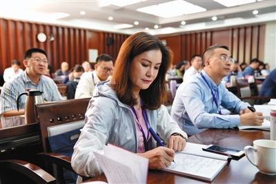 今年5月,中央统战部主办的第13期“新的社会阶层人士”培训班,学员在课堂上认真听讲。 中央社院供图
