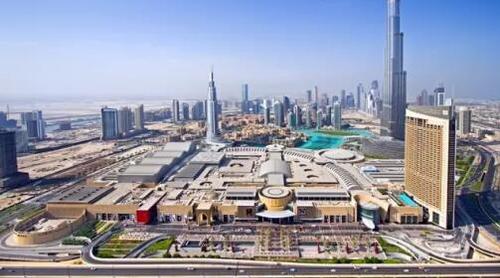 旅行团当天解散的地点:全球最大的购物中心DUBAI MALL,右后防是世界第一高楼哈利法塔。资料图