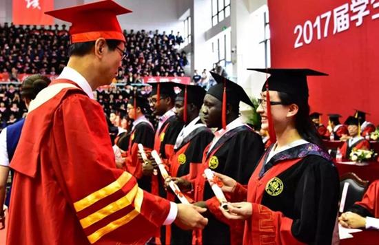 6月14日,西北师范大学2017届学生毕业典礼举行。校长刘仲奎为每一位毕业生拨穗正冠,并合影留念。李亚妮/摄