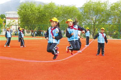 学生们在课间快乐地跳绳。