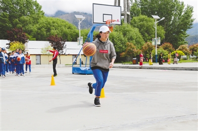 林芝市学生在参加篮球训练。
