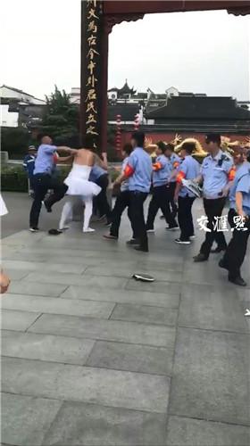 6月19日下午3点多在南京夫子庙景区天下文枢牌坊下,一名身着芭蕾舞服装的男子做网络直播,并且对路人摆出不雅动作,还频频骚扰路过女性,多人投诉后夫子庙管委会安排城管取缔,男子不听劝阻与城管发生肢体冲突,城管受伤,男子被强行带上警车送夫子庙派出所。目前警方正在进一步调查处理。