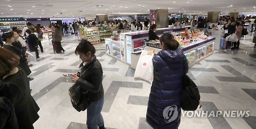 资料图片:韩国某免税店的化妆品专区(韩联社)