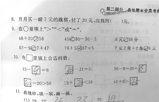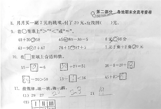 杭州明珠实验学校一年级一个班,41个学生,有11个漏做了第8题。