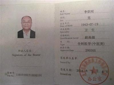 “四大神医”之一李炽明,他拥有副高职称,但并非广告中所称的医学专家。张导演称,李炽明是他的演员之一。 受访者供图