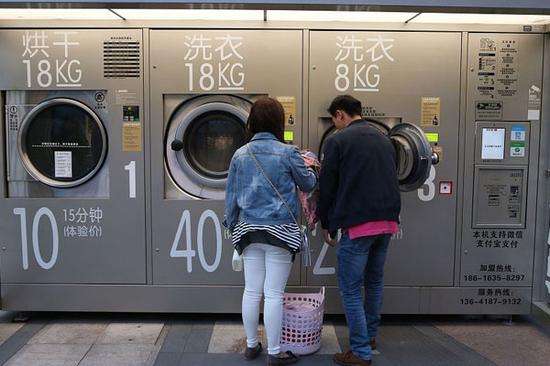 近日,在上海徐汇区一商业广场内,出现一组公用洗衣机,被媒体解读为洗衣机也开始进入“共享时代”。该公用洗衣机分为洗衣机和烘干机两种,其中18KG容量的洗衣机价格为40元/桶,8KG容量的洗衣机为20元/桶;18KG容量的烘干机为10元/15分钟。市民可选择现金支付,也可以选择微信及支付宝支付。