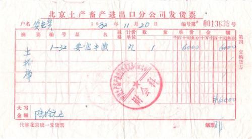 其实,从去年起,一批不同老字号、年份不同的安宫?;仆枰丫晌鞔笈某〉某瓒?。根据发票记录显示,1982年一颗“安宫?;仆琛奔鄹裎?0元。