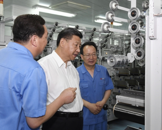 在山西钢科碳材料有限公司,习近平通过视频了解高端碳纤维研发、生产、应用情况,视察T800级高性能碳纤维生产线,了解生产工艺,察看成品展示,同现场科技人员交流。习近平指出,新材料产业是战略性、基础性产业,也是高技术竞争的关键领域,我们要奋起直追、迎头赶上。他强调,科技创新是提高供给质量和水平最重要的发力点。要强化要素投入和政策配套,推动产学研一体化,真正把企业、科研单位特别是广大科研人员的积极性和创造性激发出来,让他们既有科技创新的成就感,又有成果转化收益分享的获得感。