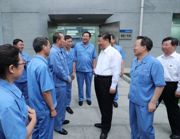这是6月22日下午,习近平在山西钢科碳材料有限公司考察。新华社记者 李学仁 摄