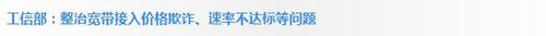 工业和信息化部近日印发通知,开展宽带接入服务行为专项整治工作。通知明确,重点整治业务宣传不规范、协议内容不完善、宽带接入速率不达标问题。针对业务宣传不规范问题,工信部强调,各企业要切实落实《关于规范电信业务推广和服务宣传工作有关问题的通知》等要求,在进行业务宣传时,做到真实、准确、通俗易懂;实行明码标价,标示醒目,价目齐全,确保用户明明白白消费。
