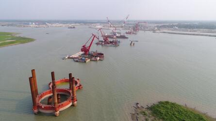 施工中的帕德玛大桥,被孟加拉国人民称为“梦想之桥”。(中国中铁大桥局/供图)