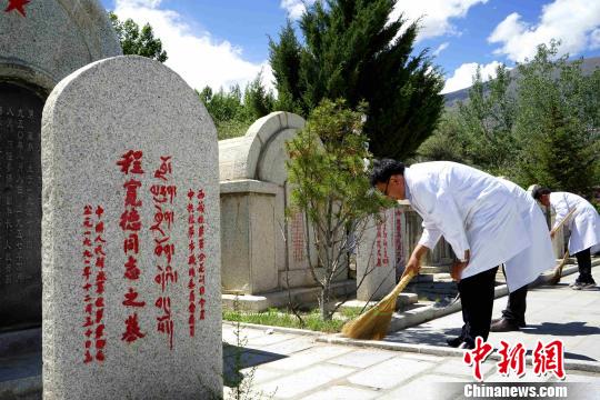 西藏自治区藏医院医护党员为拉萨烈士陵园的烈士扫墓赵延摄