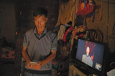 17日,阿土勒尔村,村民陈古吉展示电信免费为他家装的视频电话。