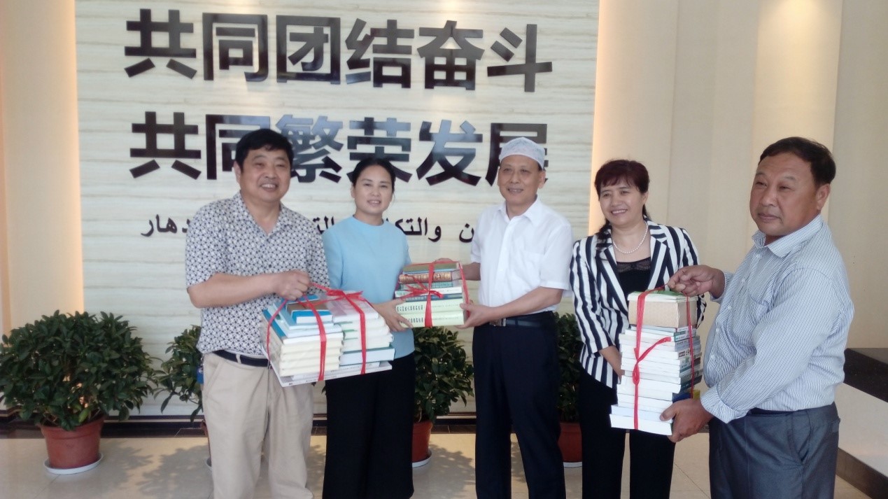▲湖北省伊协向清真寺赠送书籍。