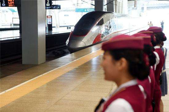 “复兴号”高铁来了!6月26日,具有完全自主知识产权的中国标准动车组“复兴号”,在京沪高铁正式双向首发。这标志着中国高速动车组已经走在世界前列?!案葱撕拧闭婪懦龅乃俣扔爰で?,代表着“中国铁路在新时代奋勇先行的坚强决心”,也象征着一个民族奔向伟大复兴目标的矢志不渝。