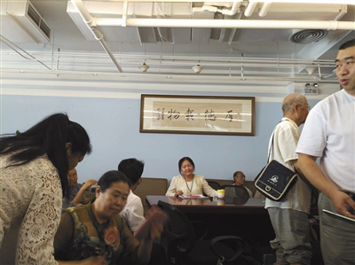 26日下午,多名投资者在北京银河SOHO的B座8层华赢凯来一房间内询问兑付情况、办理实物兑付。新京报记者 宓迪 摄