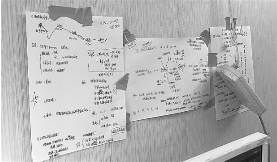 高考结束第二天,王娜娜在自己的店里接受了钱报记者采访,店里墙壁上贴满了她的复习资料。