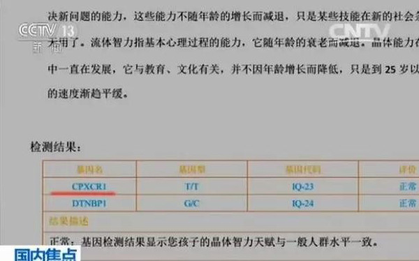 专家表示,以某一两个基因来判断孩子是否具有天赋,目前并没有科学依据,建议大家不要盲目相信广告宣传。